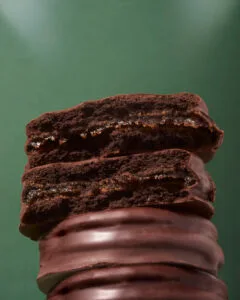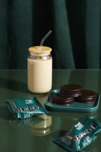 • Composición: Está formado por galletitas de chocolate rellenas de una mezcla de cacao, dulce de leche de coco y mantequilla de maní.